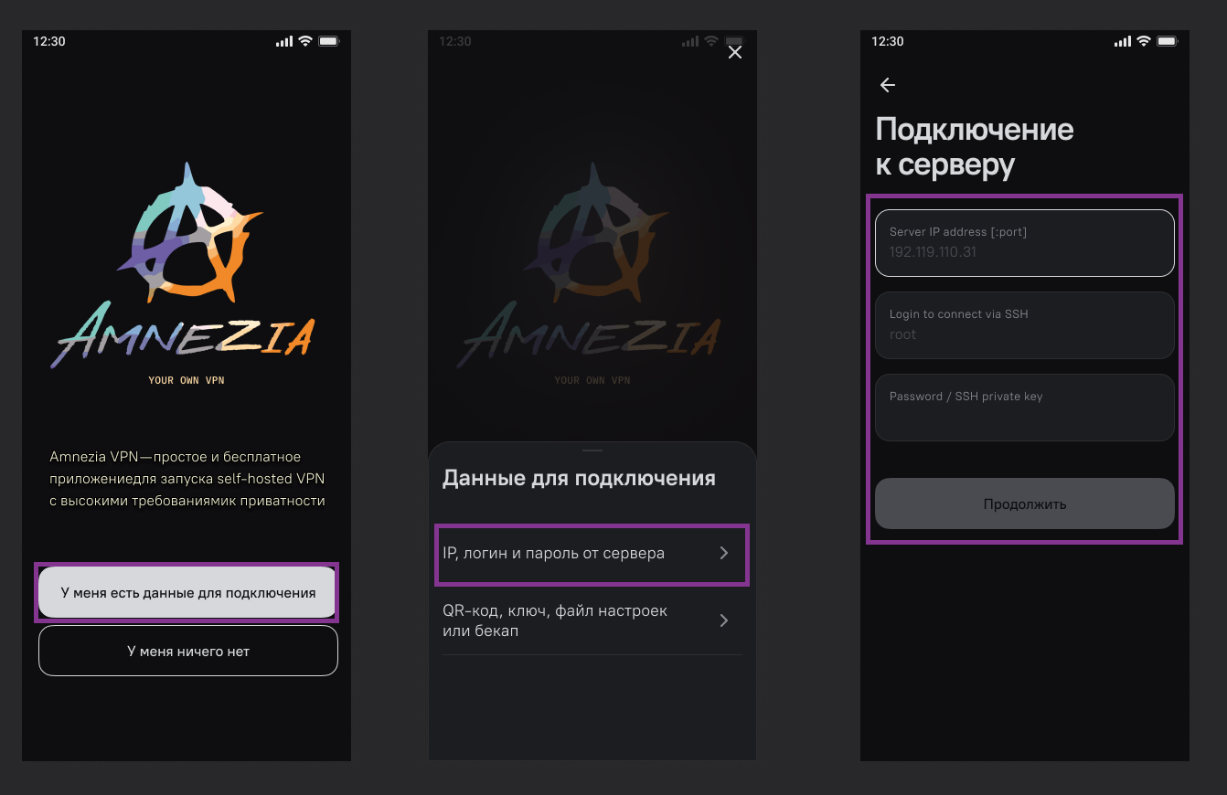 2.2. Метод установки (Автоматическая): Использование функции «Свой сервер» в клиенте Amnezia для автоматического развертывания.