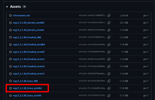 wget https://github.com/ViRb3/wgcf/releases/download/v2.2.30/wgcf_2.2.30_linux_amd64